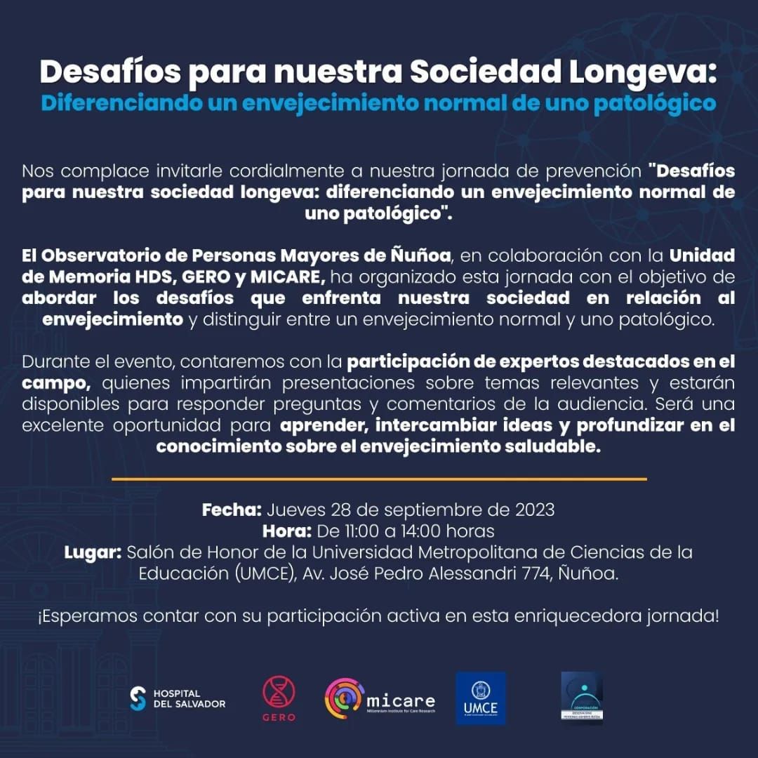 Hemos recibido esta Invitación desde el Hospital del Salvador y del Observatorio de Personas Mayores de Ñuñoa, es importante comenzar a tener redes con otras Instituciones de Personas Mayores y autoridades de Salud.